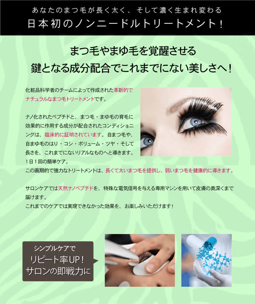 ホームケアの10倍濃度の美容液を、マシーンを使ってよりスピーディーにまつ毛に浸透させていきます。